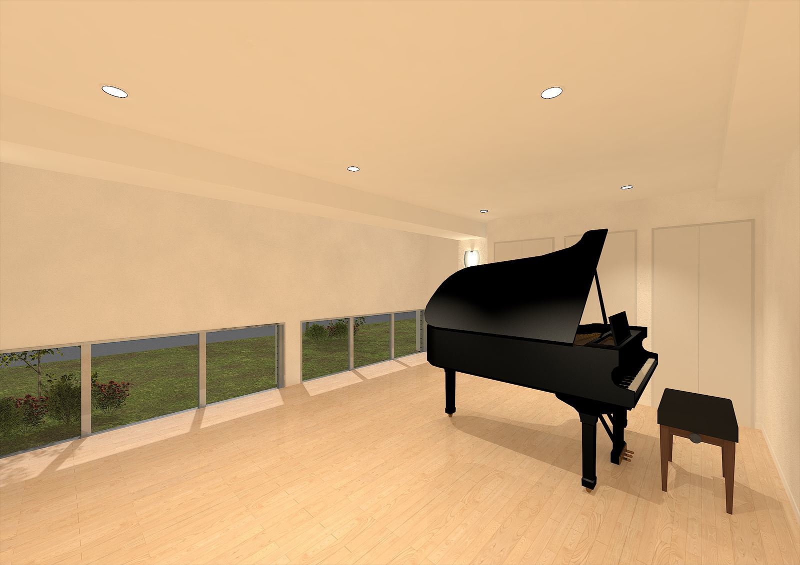 自室での演奏可能時間は5時~24時まで。街なかのスタジオや学校の練習室などが利用できない、早朝や夜間も演奏が可能です。さらに、入居者に向けたレンタル音楽スタジオ(有料)を大・中・小と3室併設。大スタジオにはグランドピアノ、中スタジオにはアップライトピアノの設置を予定しています。これにより、友人などとのセッションや音合わせなどにも活用でき、入居者の音楽活動がより充実することが期待されます。