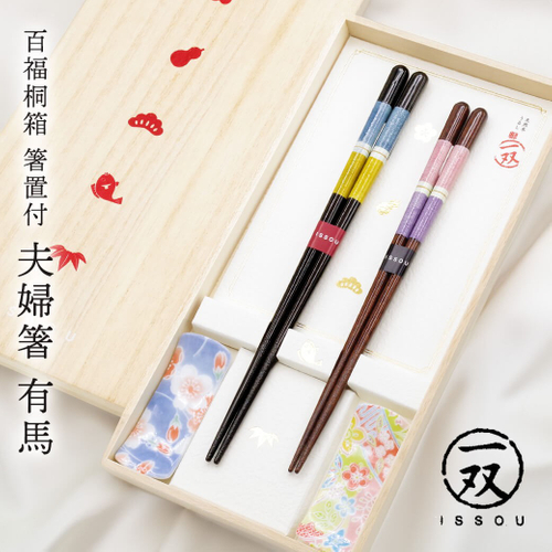 (2)百福桐箱 箸置付夫婦箸 有馬