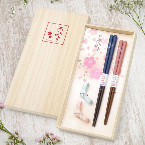 桜モチーフが可憐に彩る、ブルーとピンクの和の温かみあふれる夫婦箸。