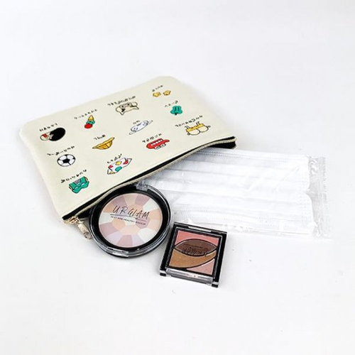 メイクポーチはもちろん、マスクポーチとしても活用できるサイズ感です。フラットなのでバッグの中でもかさばらず、スッキリ収納できちゃいますよ。