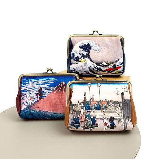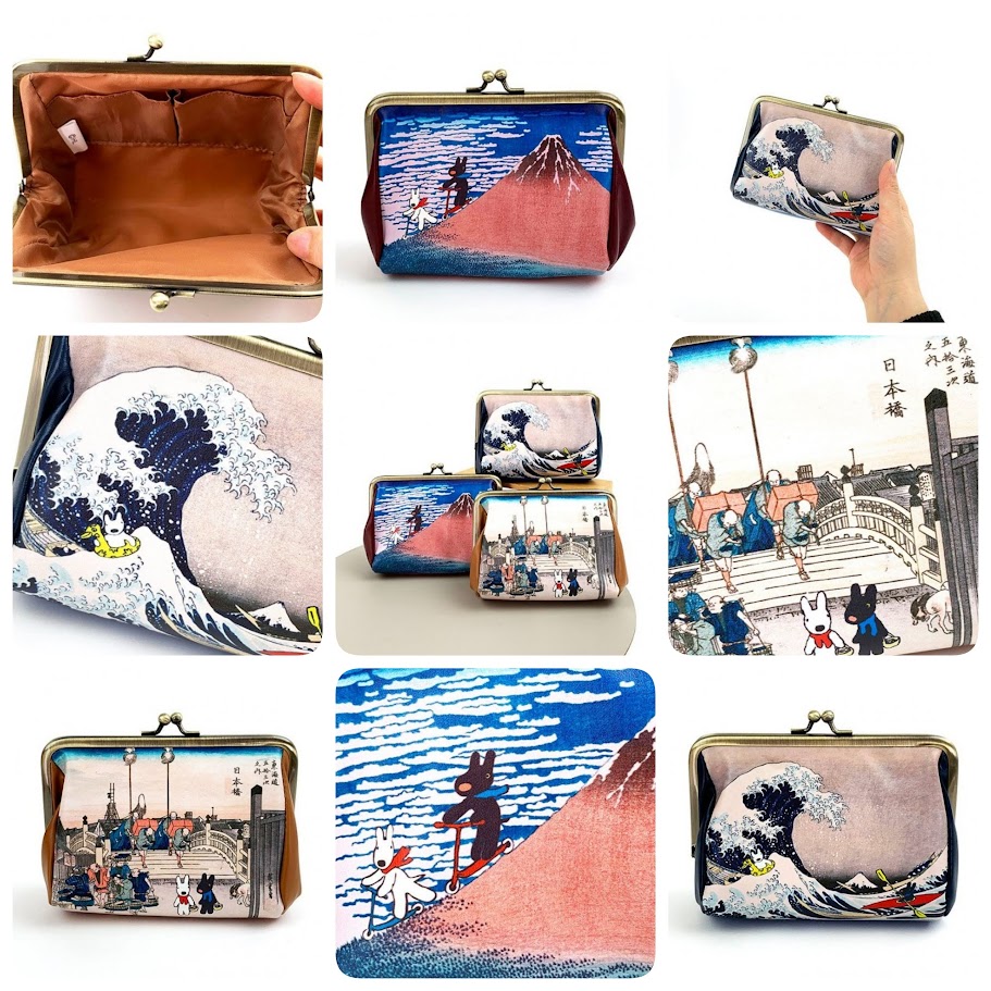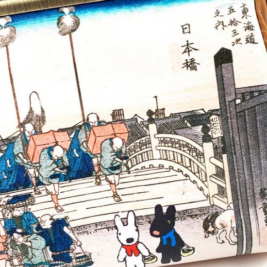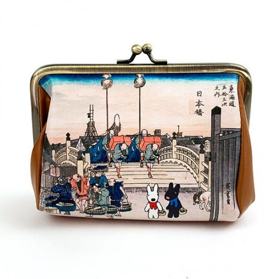 とっても有名な『東海道五十三次之内 日本橋』に”がま口”という、レトロ感満載のポーチ。そこに佇むのがリサとガスパール!