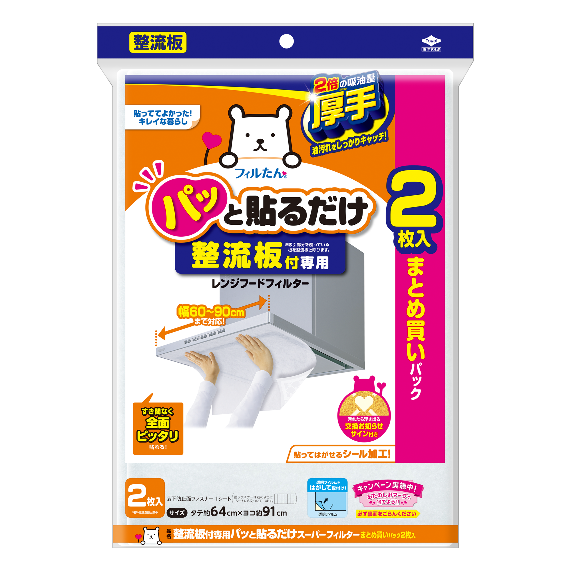整流板に“パッと貼るだけ”で油汚れを予防!フィルたん(R)の整流板タイプ用フィルターに2枚入まとめ買いパックが登場
