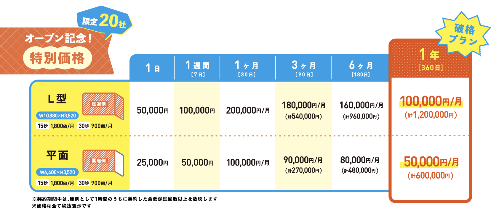 当社は、このスクリーンを通じて、長崎の企業や商品の魅力を最大限に引き出し、地域に活力を生み出すことに貢献してまいります。長崎に新たな話題と視覚的な感動をもたらす「HIGUCHIグッドライトビジョン」。オープンを記念して、今だけの特別価格プランをご用意しております。