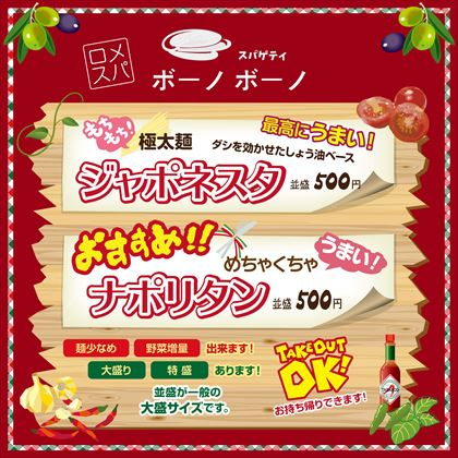 昭和30年代、ボーノボーノの先代が考案して以来、多くの方々に愛された「ロメスパ」は多くの店に受け継がれ、今や会社員や学生達の定番となりました。