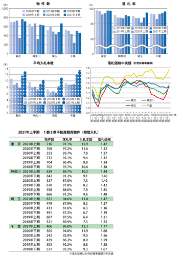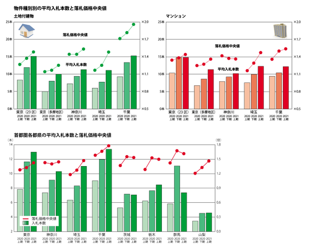 競売市場コロナ前と変化、入札本数が急増し価格も上昇  ~エステートタイムズが2021年上期の 1都3県不動産競売統計を発表~