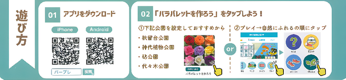 スマートフォンに「TOKYO PARKS PLAY」アプリをダウンロードしてください。