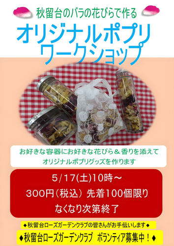 ローズボランティアによるワークショップにてバラのポプリをお作りいただけます。