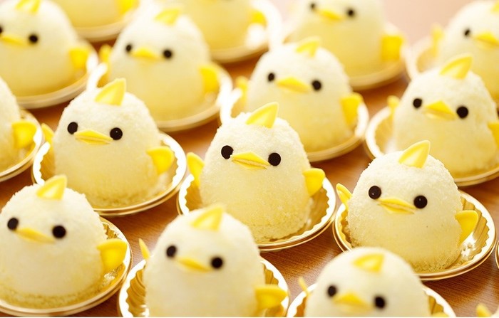 愛知県の地元食材「名古屋コーチン」の卵を使ったプリンをバニラの香り豊かなババロアで包み込み、粉末状にしたスポンジをまとわせ、ふんわり「ひよこ」の形に飾り付けた大人気のスイーツです。