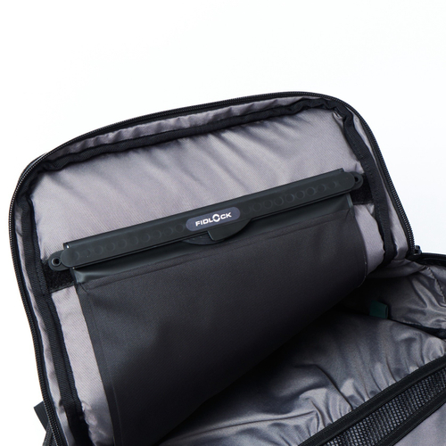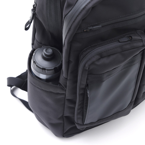 水深1mに沈めても浸水しないFIDLOCK社のHARMETIC超完全防水ポケットを内蔵し、絶対に濡らしたくないものを収納できたり、びしょびしょに濡れた傘や結露で汗をかいたボトルをいれられるバケツ型サイドボトルポケットなどを装備するなど機能性が満載。