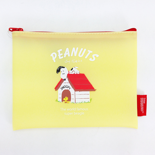 こちらのポーチはドッグハウスの入り口にちょこんと立つウッドストックと、上から覗き込むスヌーピーの日常感が微笑ましい♡