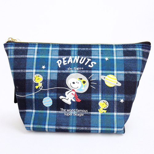 なかよく宇宙を漂うスヌーピーとウッドストックの姿が楽しげでかわいい、人気のアストロノーツ柄はネイビーのチェックがとってもおしゃれ♪
