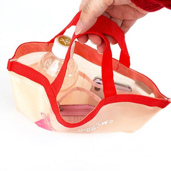 リトルミィの赤いバッグインバッグもあります。メッシュ部分は赤と言うよりはサーモンカラー。持ち手の部分は赤です。