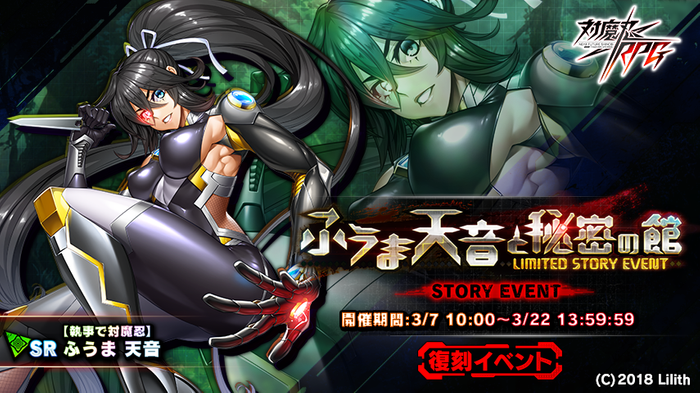 株式会社インフィニブレイン(本社:大阪市中央区、代表取締役:武山 英治)は、オンラインゲームプラットフォーム「DMM GAMES」( http://games.dmm.com/ )にて配信している、近未来くノ一ロールプレイングゲーム『対魔忍RPG』において、期間限定復刻ストーリーイベント「ふうま天音と秘密の館」を2021年3月7日 (日)~3月22日 (月)に開催いたします。