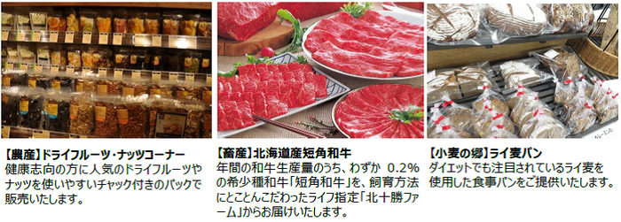 「地産地消」を推進する地元松原市や近隣地域でつくられた商品、環境・健康に配慮したサスティナブル・ヘルシーな商品を取り扱います。また、「ビオラルコーナー」では、「オーガニック」・「ローカル」・「ヘルシー」・「サステナビリティー」をコンセプトに、体に優しい商品を取りそろえます。