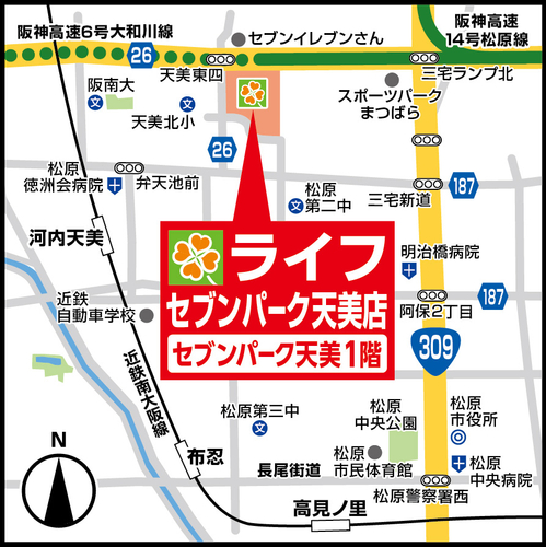 <店 名>「ライフセブンパーク天美(せぶんぱーくあまみ)店」