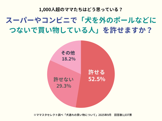 そこでママスタセレクトでは「スーパーやコンビニで犬を外のポールなどにつないで買い物している人を許せますか?」というアンケートを実施しました。