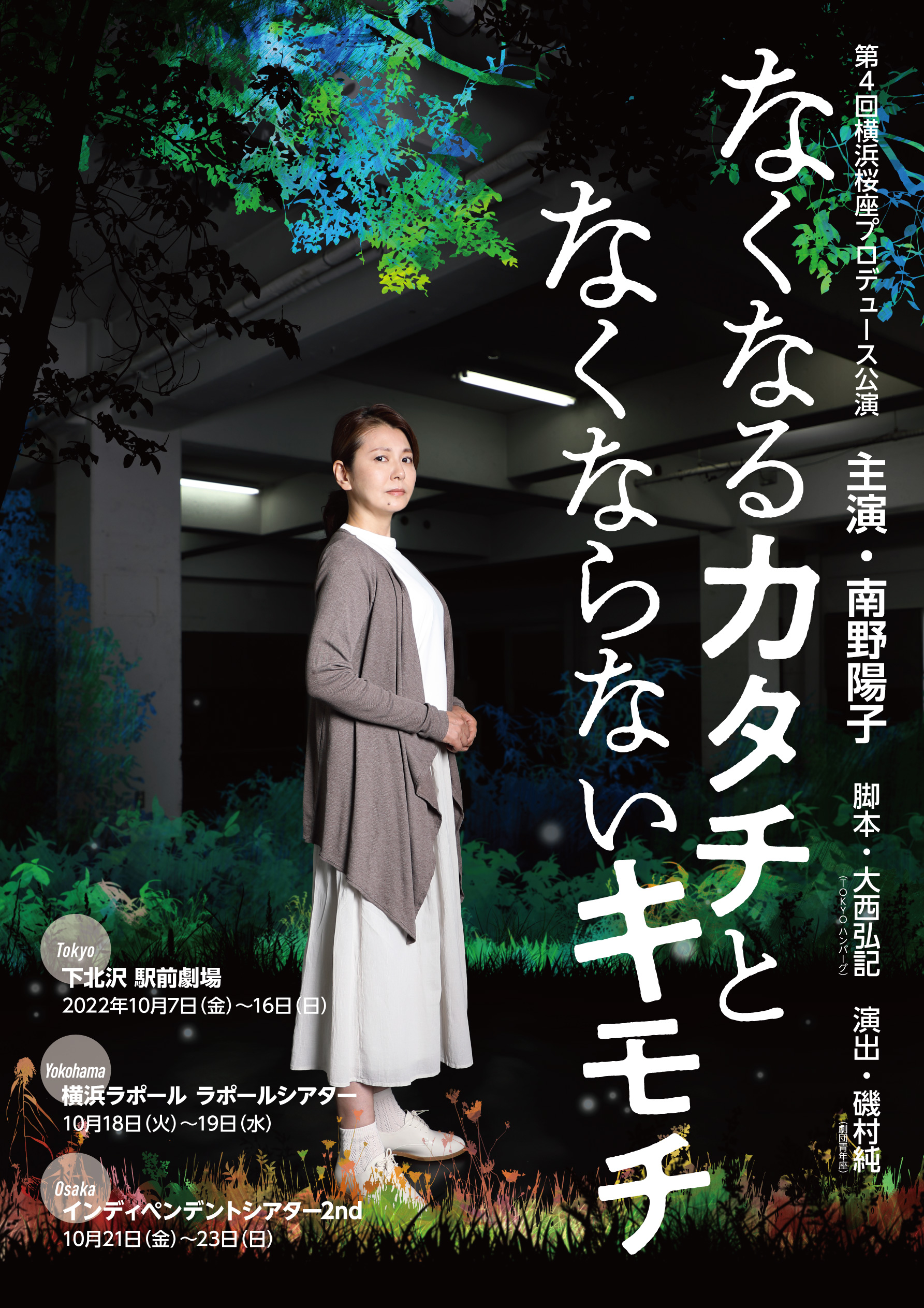 80年代にはトップアイドルとして一世を風靡し、女優としては日本アカデミー賞主演女優賞も受賞している南野陽子。その南野陽子主演の舞台『なくなるカタチとなくならないキモチ』を、障がい者に寄り添う舞台を作り続けてきた「横浜桜座」(一般社団法人グランツ)が上演します。初日は10月7日、下北沢・駅前劇場にて。その後、横浜(ラポールシアター)、大阪(インディペンデントシアター2nd)と3都市での上演を予定しています。
