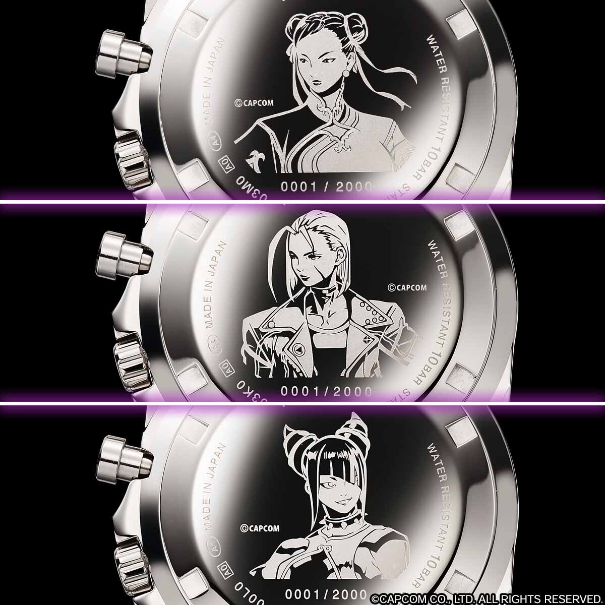 限定数は各2000点。裏蓋には各キャラクターのイラストとエディションナンバーが刻印されます。