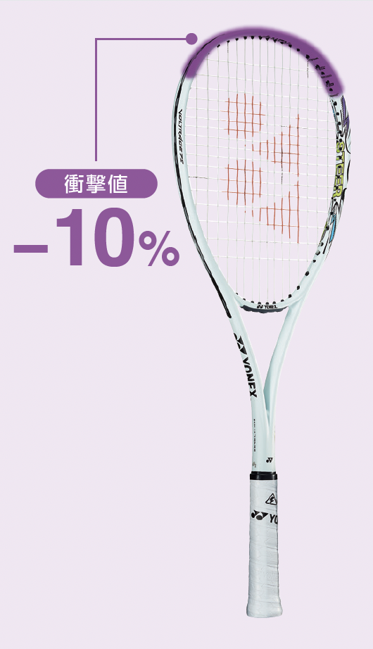 ボルトレイジシリーズに新採用の軟質素材を頭部グロメットに搭載することで、打球衝撃を緩和し、柔らかい打球感を実現。