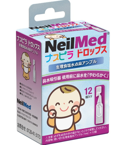 ナスピラ ドロップスは体液と同じ塩分濃度の生理食塩水なので 鼻に入れても痛くありません。赤ちゃんの鼻に垂らして鼻水を柔らかくしてから吸ってあげるとスッキリ吸引が出来ます。