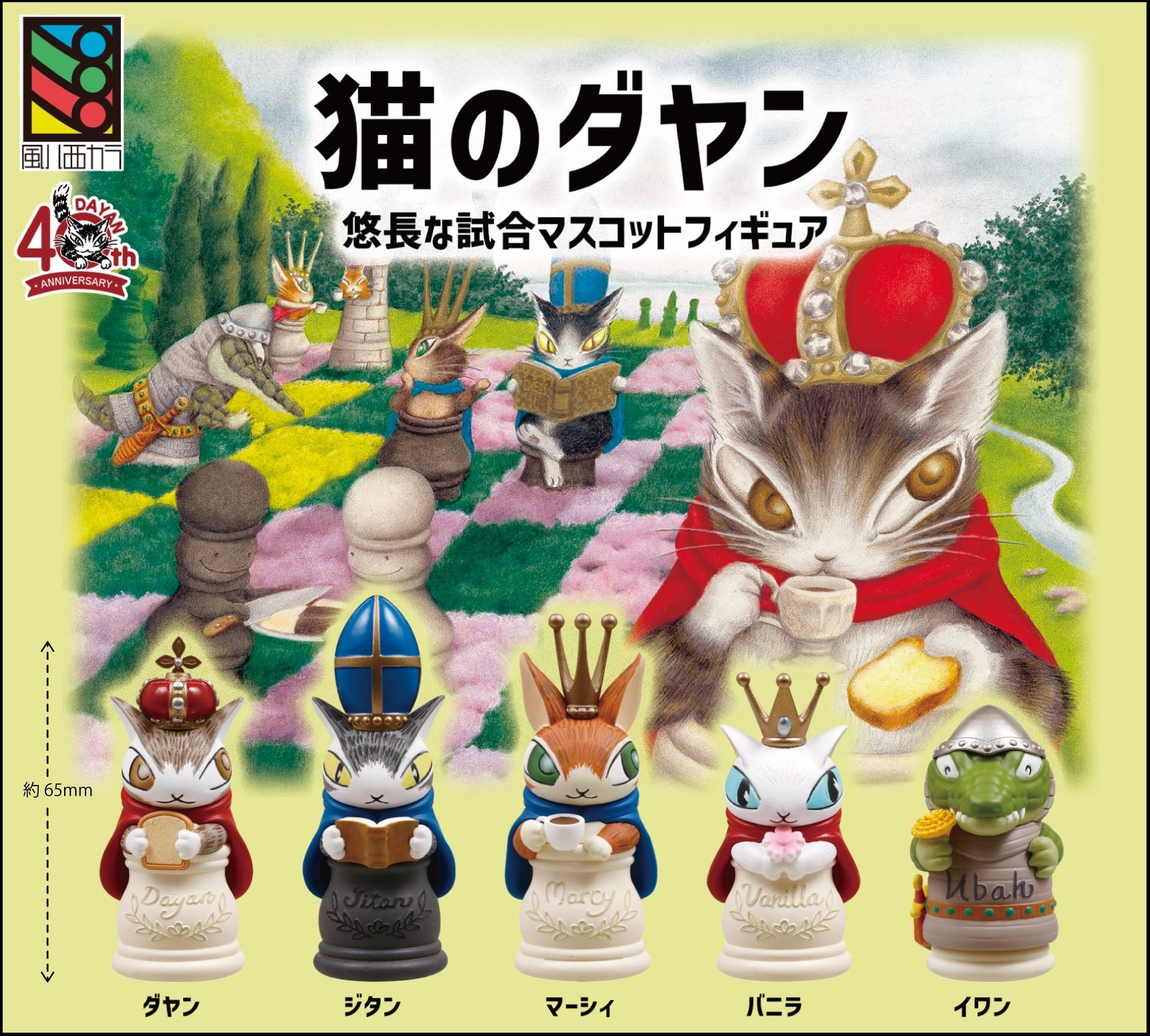 「猫のダヤン」悠長な試合マスコットフィギュア 全5種を全国のガチャガチャで7月6日に発売