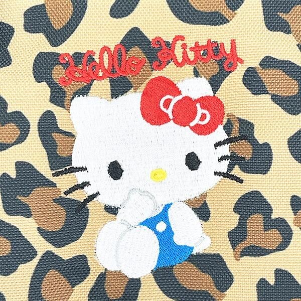 ショルダーバック全体が存在感抜群のレオパード柄です。ちょっと癖の強さが出てしまうレオパード柄にキティの刺繍デザインによって柔らかさがでてバランスがとれたデザインです。ショルダーの紐はよく見てみると「HELLO KITTY」とデザインされこのロゴテープのようんな見た目がおしゃれです。