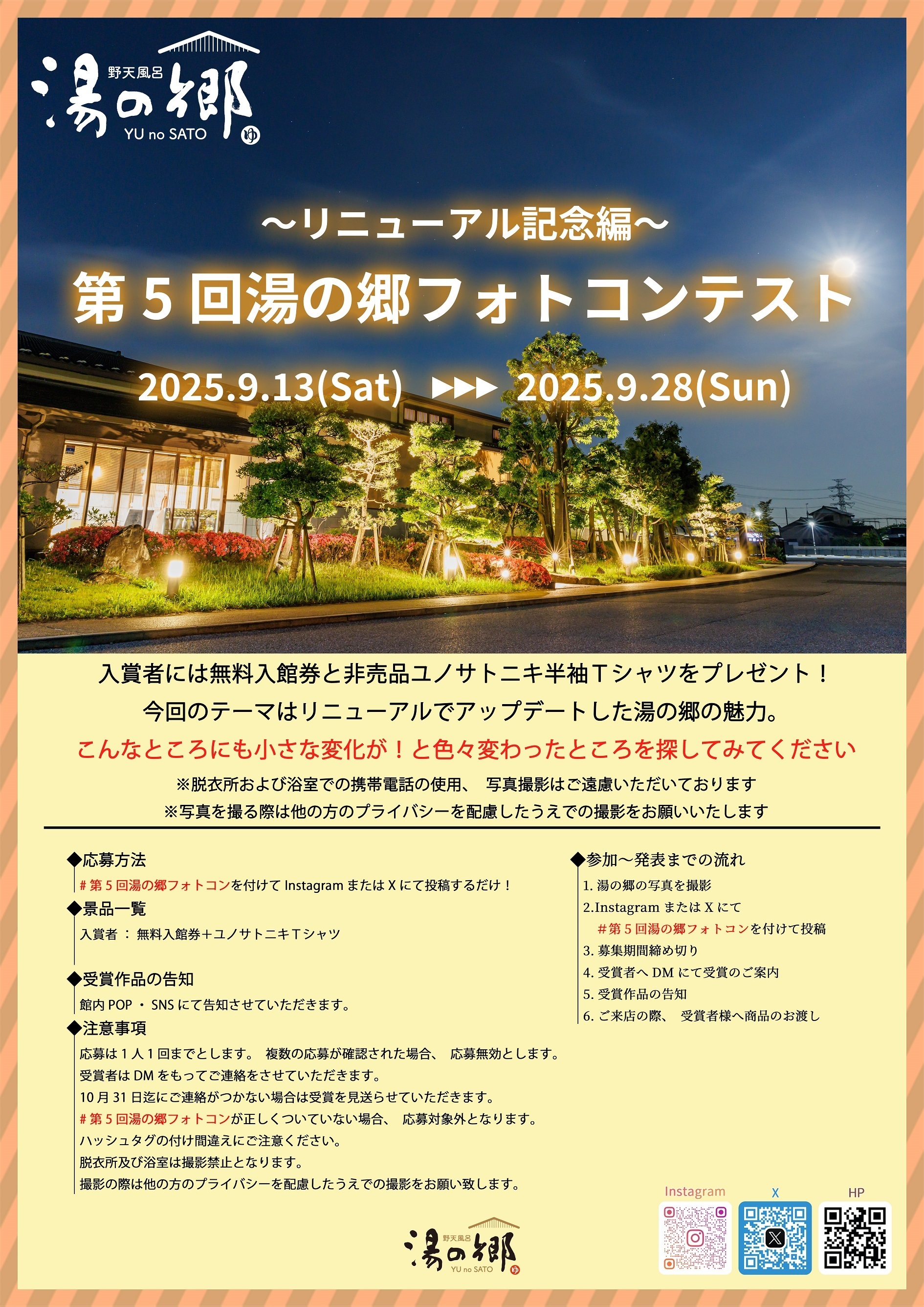 株式会社楽久屋(所在地:東京都港区、代表取締役:新井 正一)は、運営する「野天風呂 湯の郷」を改装し、2025年9月13日(土)にリニューアルオープンいたします。