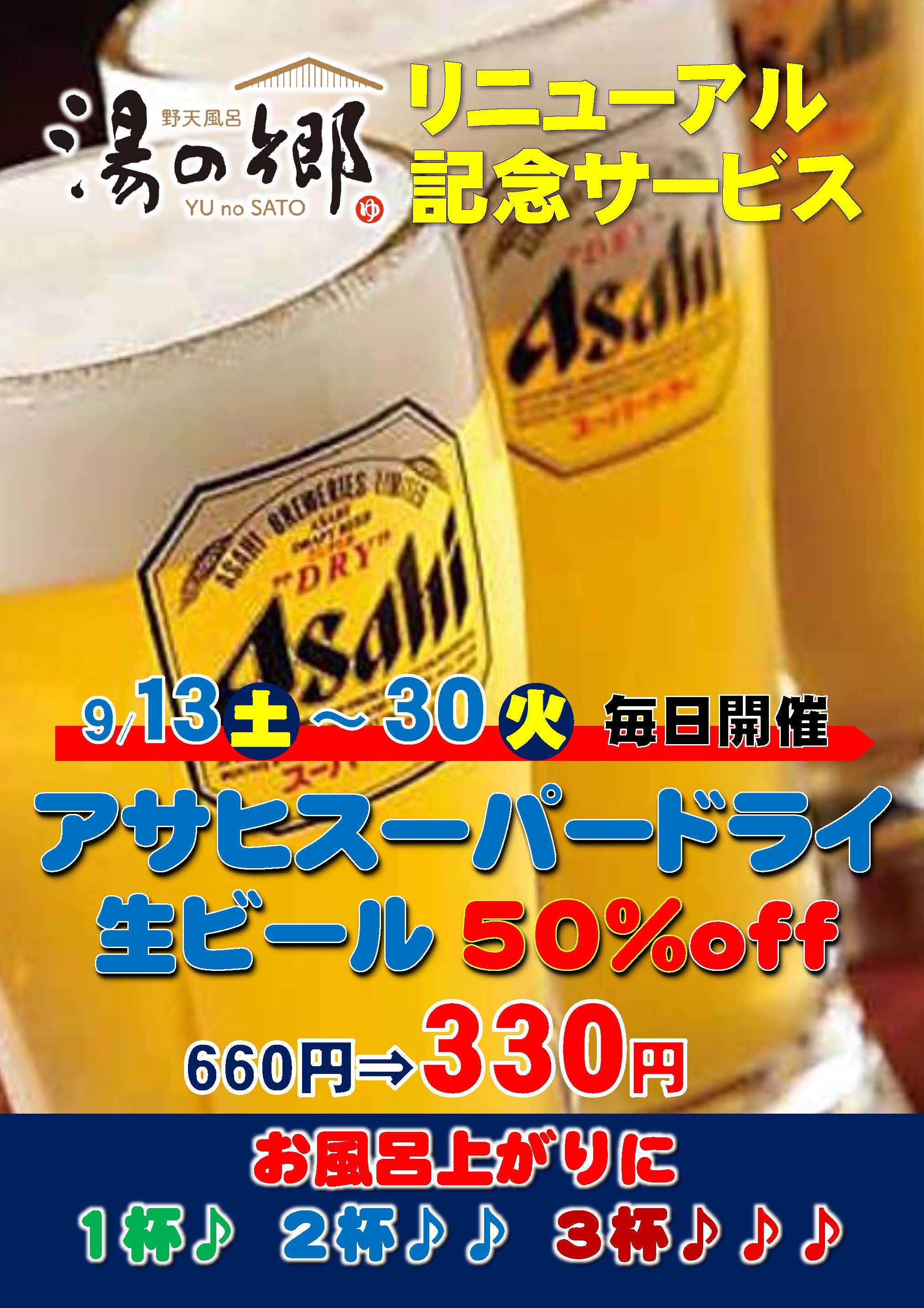 リニューアルした「お食事処PALM」より、お得な生ビール半額キャンペーンがスタート。
