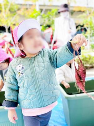 小さいけれど甘いさつまいもは、子どもたちが家族へのお土産として自宅に持ち帰って、各家庭の食卓で味わいました。さつまいもご飯やお味噌汁などそれぞれの家庭で工夫した「さつまいもメニュー」が食卓を飾ったようです。収穫体験を話し、恵みを家族とともに美味しくいただく。その時間が子どもたちの成長に大切な栄養となることでしょう。