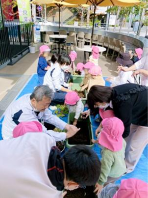 医療法人医誠会(本部:大阪市北区、代表者:谷 幸治)が運営する医療複合施設「i-Mall」では、緑化と都市養蜂に継続して取り組み、自然と共生する都市型医療空間をめざして「緑の回廊プロジェクト」を推進しています。隣接する扇町公園や野崎公園とi-Mallを緑でつなぐこの取り組みは、サステナブルな都市環境づくりの一環として、季節ごとの緑化活動を実施しています。11月には、i-Mall内「ISEIKAI lounge さくらテラス」の〈さくらテラスガーデン〉で、併設の保育園「さくら保育園」の園児たちがさつまいも掘りを楽しみました。