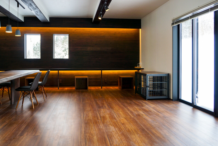 冬シーズン大好評いただいた「Doggovillage」も黒姫きゃんぷらんど内の施設。ペットOKのトレーラーハウス3棟・キャビンタイプ1棟のエリアとなっています。