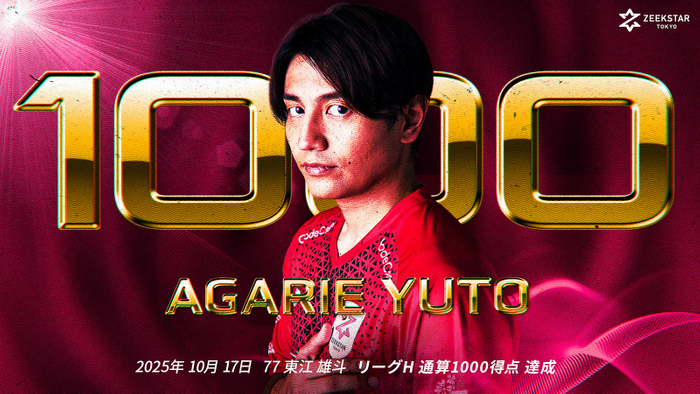 ジークスタースポーツエンターテインメント株式会社(東京都品川区、代表取締役社長:黒田 真一)がマネジメントするリーグH(運営:一般社団法人日本ハンドボールリーグ)所属のジークスター東京は、2025年10月17日ゴールデンウルヴス福岡戦で、東江雄斗選手がリーグH通算1000得点を達成しましたのでお知らせいたします。
