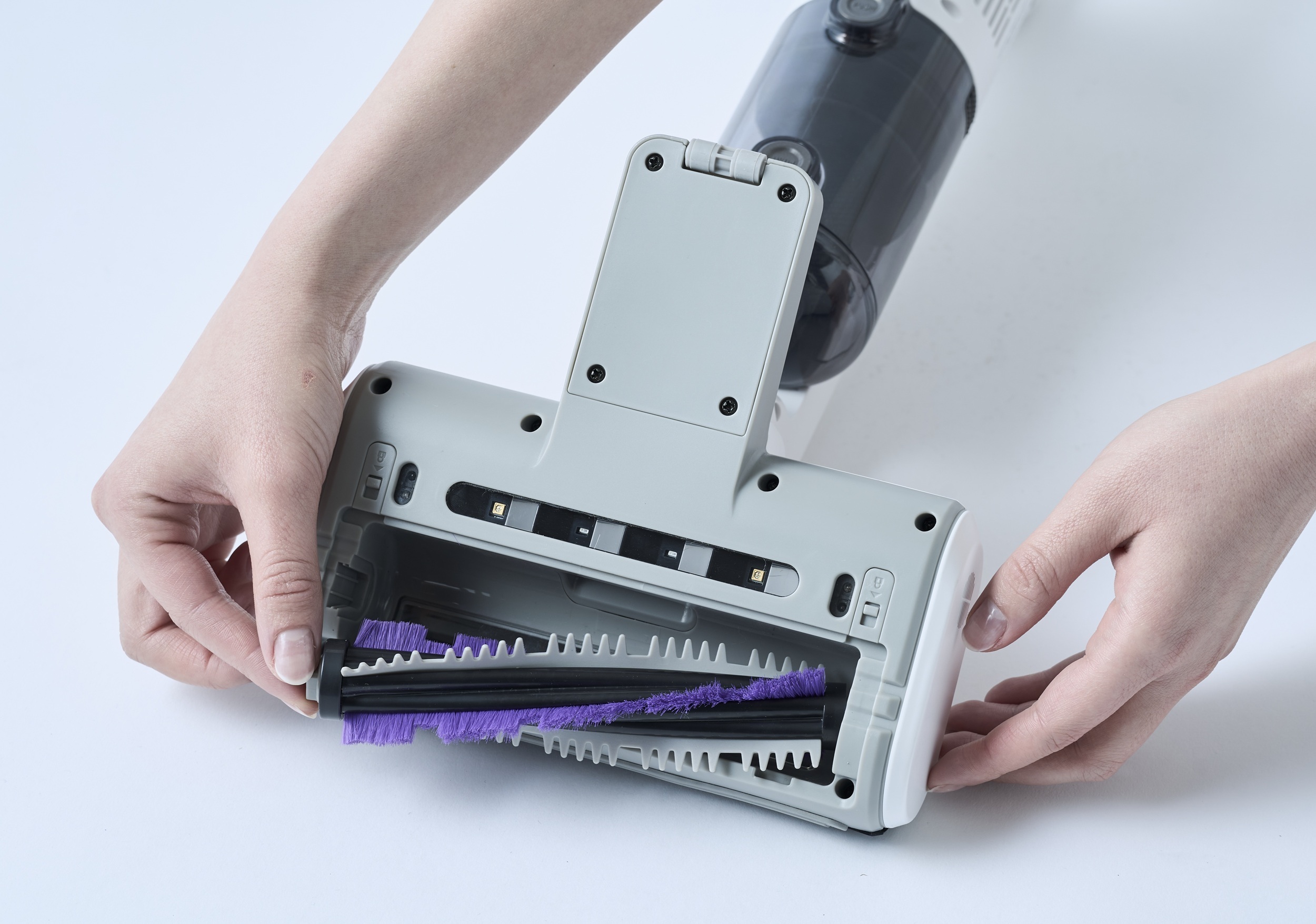 工具なしでブラシカバーが開き、簡単にブラシをメンテナンスすることができます。ダストボックス部分は丸ごと水洗い可能。