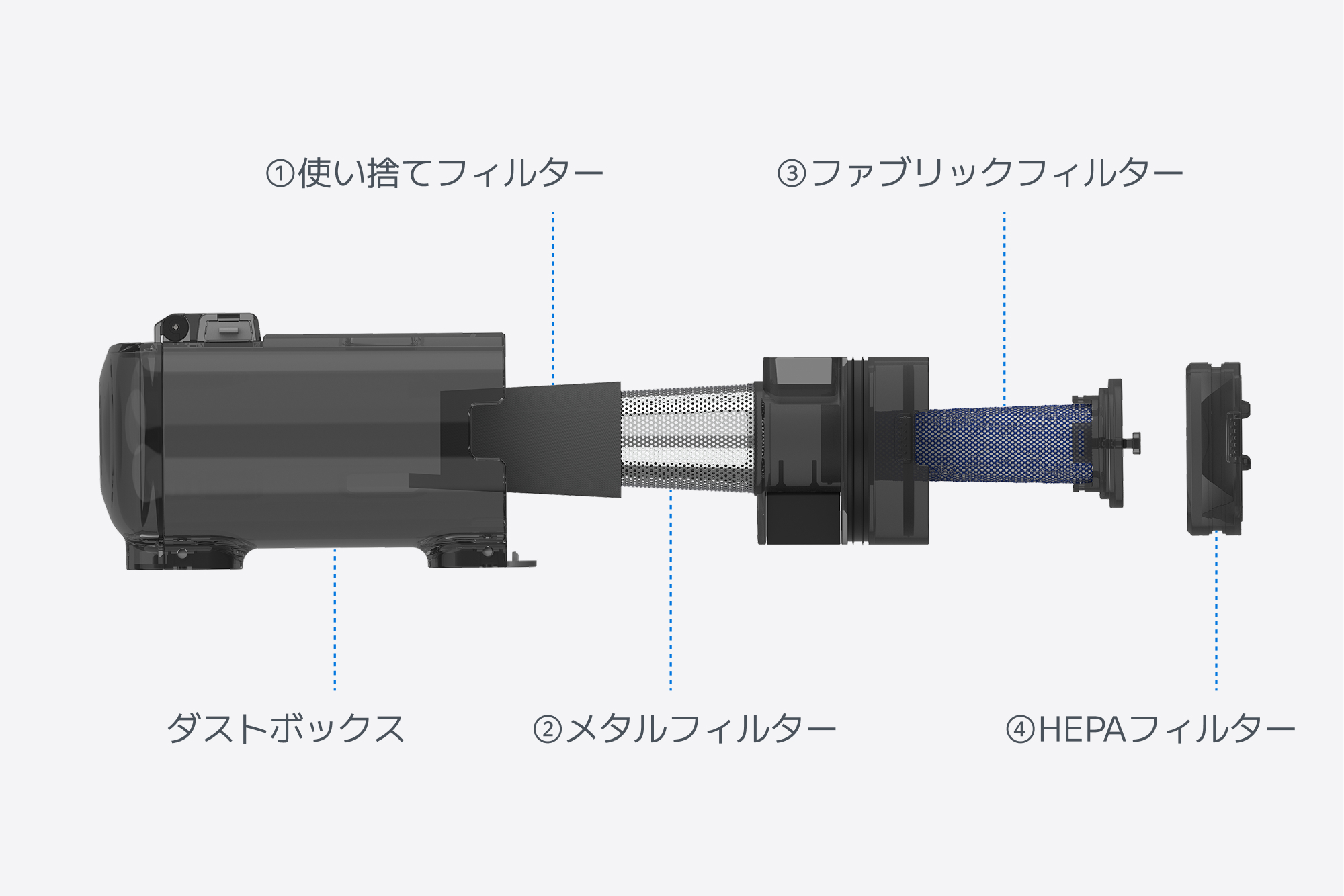 特長(4):4重フィルター構造で空気まで清潔にする新型ダストボックス