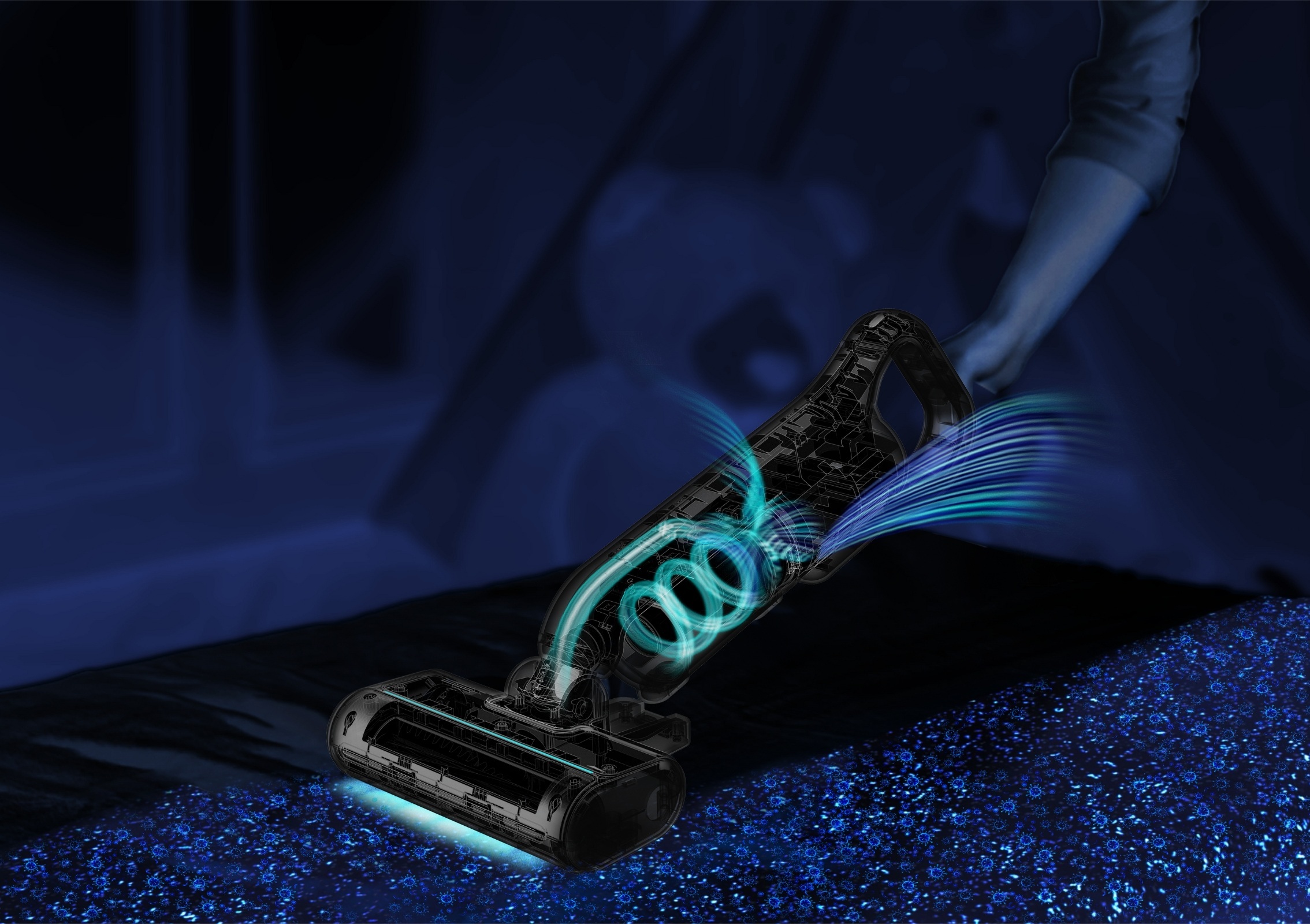 UV照射で除菌・ウイルス除去し、たたきブラシと強力吸引でダニ・アレルゲンも99.9%以上除去。健康的な睡眠環境を整えます。
