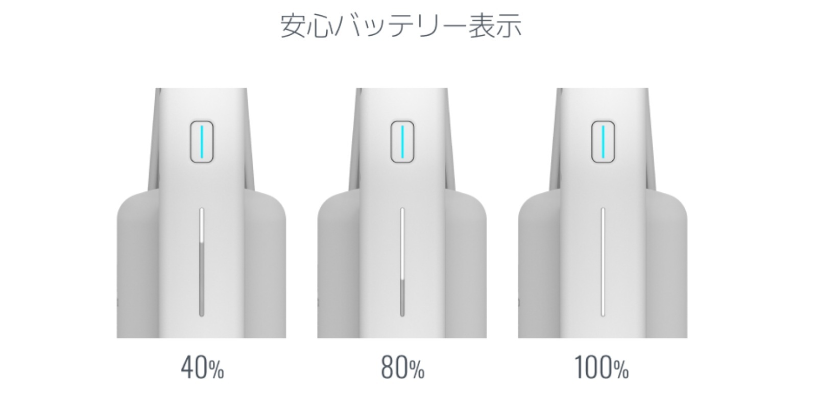 標準モードで40分使用可能。使用中もバッテリー残量をライトで確認できるので安心です。
