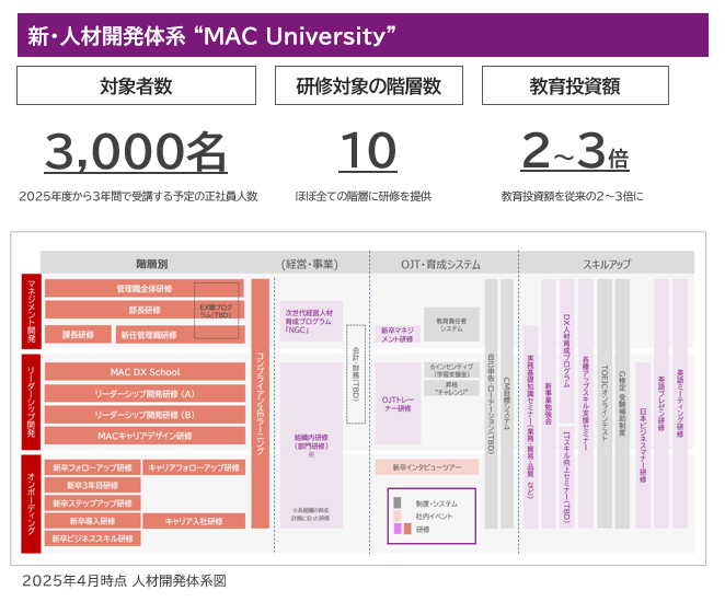 <一人ひとりが仕事に「手ごたえ」を感じ、次の自分へと成長を促す『人材開発体系(MAC University)』>