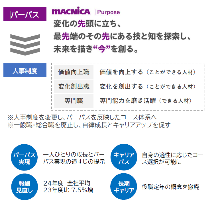 マクニカは今後も、「人が全て、人にはじまり、人に終わる。」を前提としたパーパス・人的資本経営を推進し、大事にしてきた企業文化である「オープン、フェア、シンプル」と「明るく、楽しく、元気よく」という考え方をモットーに、社員一人ひとりが社会にとって高い価値を提供できるような企業を目指してまいります。