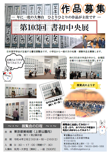 『第103回 全国学校書初中央展』実施のお知らせ!