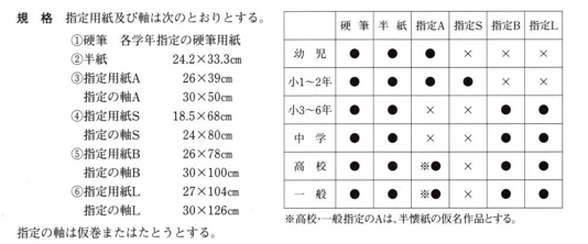 【作 品】 小中高児童生徒、一般の毛筆・硬筆作品とし、本会規定の手本・用紙・仮巻により出品する。