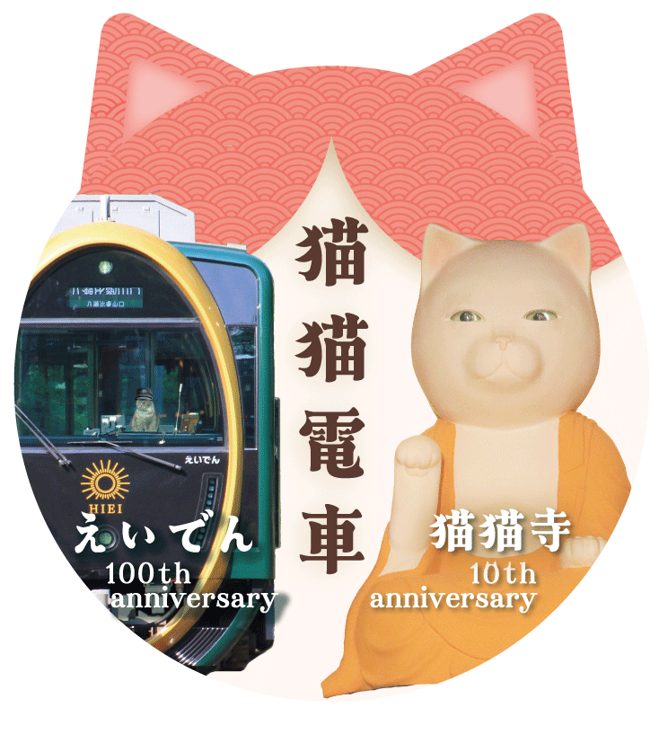 開業100周年を迎えました。また、猫猫寺が本年9月に開業10周年を迎えられることから、招喜猫宗総本山 猫猫寺(所在地:京都市左京区、管長:加悦徹)と、「猫猫寺 オープン10周年」×「叡山電車開業100周年」のコラボレーション企画を2026年2月22日(日)より実施します。また、3月22日(日)には叡山電車八瀬比叡山口駅において「猫猫寺祭り」を開催します。