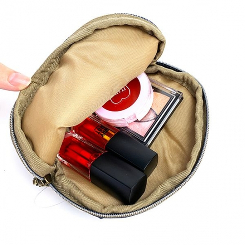 ファスナーがサイド下部まで開くのも、シェル型ポーチの魅力です。中身が取り出しやすくて、見やすいは嬉しいですよね。