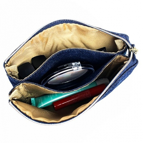 シンプルでオシャレなデニムシリーズから、サイズや形の違うポーチがいろいろ加わりました。カジュアル派の方にはもちろん、男女問わず使いやすいデザインです。