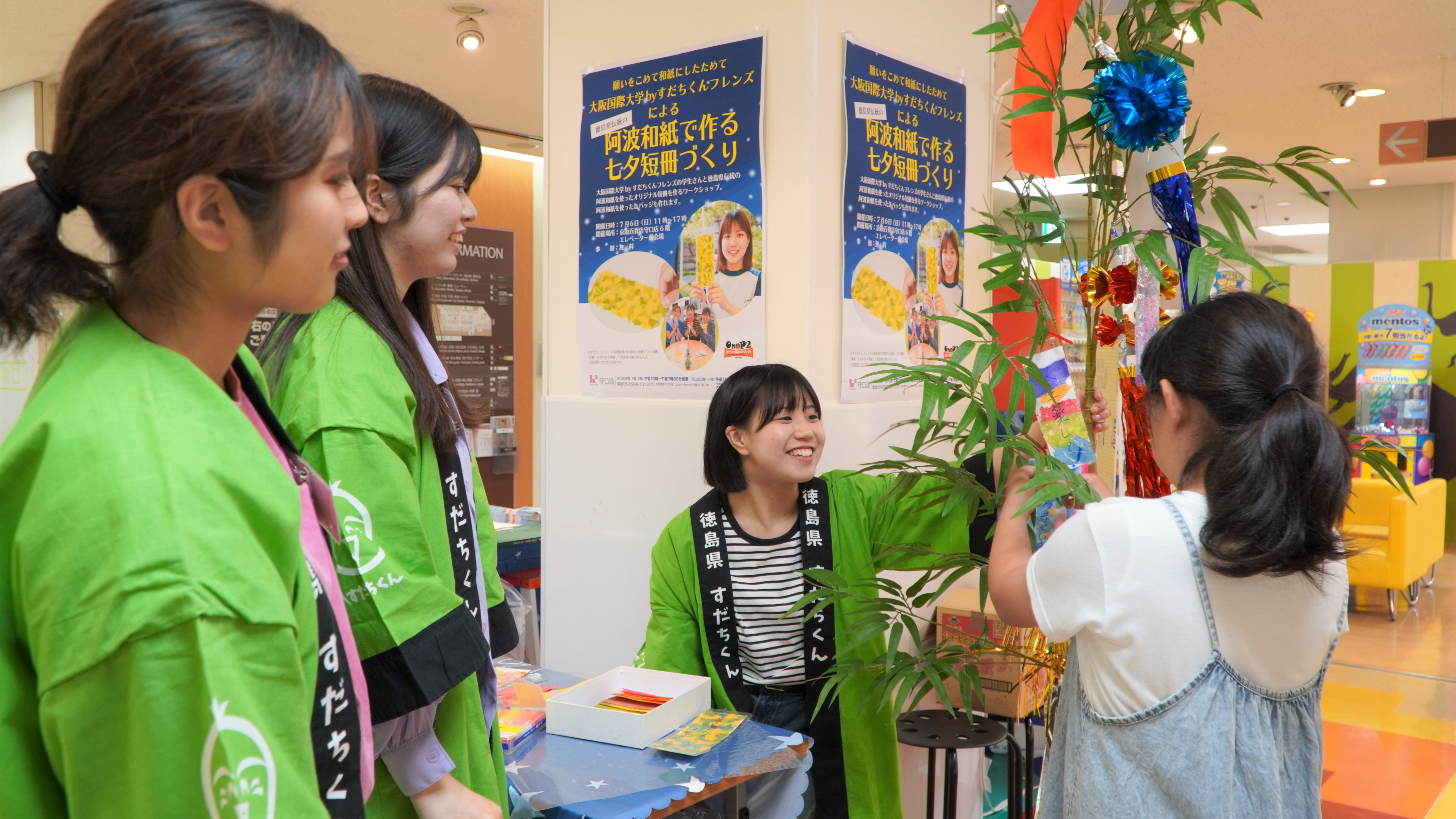 産官学連携 大阪国際大学すだちくんフレンズ×京阪百貨店×徳島県「阿波和紙で七夕短冊づくり」