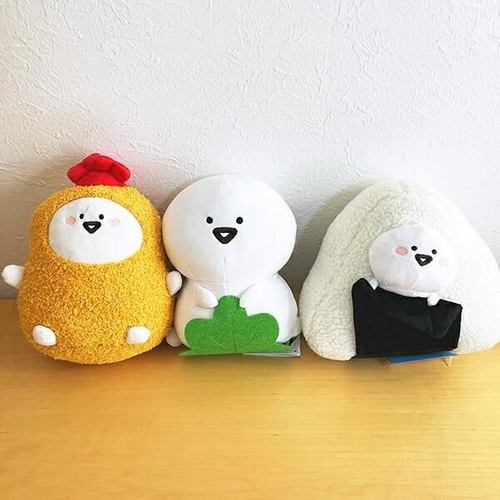 皆様はもうお気づきかもしれないのですが、このシリーズは食べ物!ということでぬいぐるみではなくぬい具るみなのです、、、!打ち間違えではございません(笑)。おにぎりに変身したお文具さんは後ろから見ると完全におにぎり!おにぎりの中からひょっこり顔をのぞかせるお文具さんに胸キュンです。サイズ:20cm×22cm×15cm 素材:ポリエステル