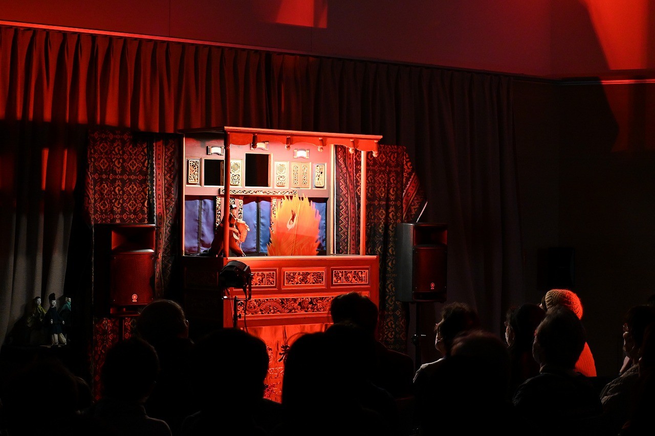 続く第2弾の生誕祭イベントとして3月8日(日)、芥川龍之介原作『創作布袋戯(ポテヒ)地獄変』の人形劇が開催された。芥川龍之介の代表作「地獄変」が、台湾や東南アジアの伝統人形芝居「布袋戯(ポテヒ)」とインドネシアの楽器「ガムラン」によって華麗に表現。「地獄変」は芸術至上主義を貫く絵師を主人公とする物語であり、その軽やかな動きと華麗な衣装による人形劇は参加者を魅了した。公演後には出演者と制作に携わった大正大学文学部日本文学科の学生によるアフタートークも行われ、公演の見所等を解説した。