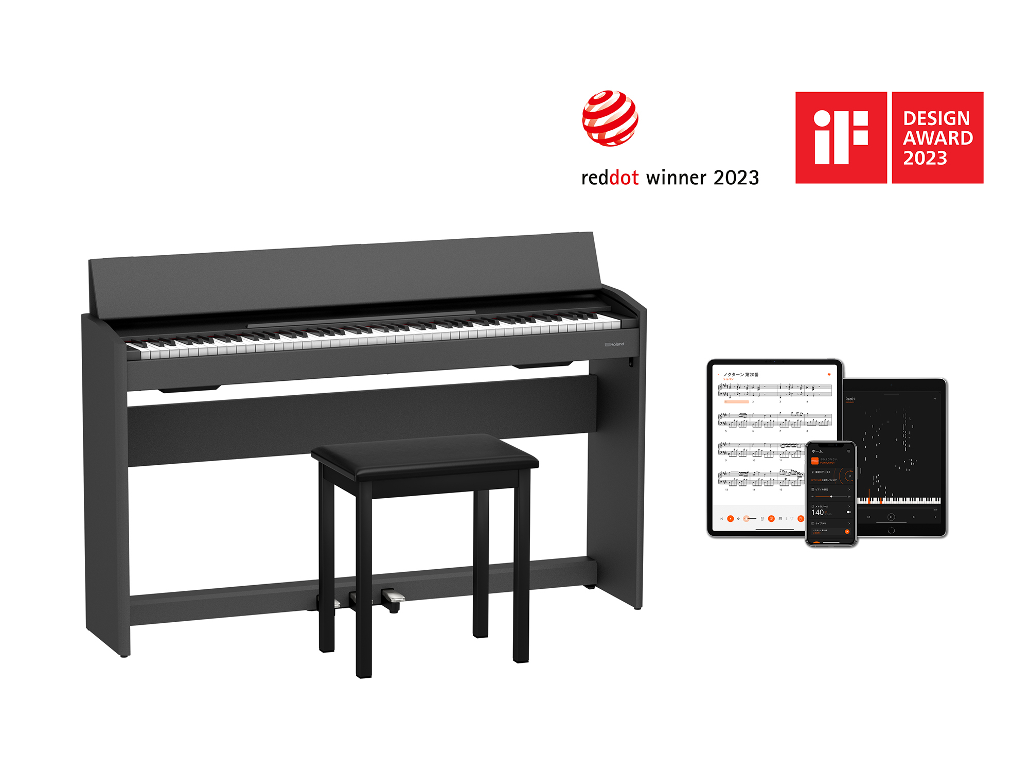「レッドドット・デザイン賞」は1955年ドイツで設立された国際的に権威のあるデザイン賞です。ドイツ・エッセンのノルトライン・ヴェストファーレン・デザインセンターが、毎年「プロダクト・デザイン」、「ブランド&コミュニケーション・デザイン」、「デザイン・コンセプト」の3つの部門で優れた作品を選定しています。今回、『F107』と『Roland Piano App』、『AIRA Compact』シリーズの『T-8』、『J-6』、『E-4』、『BRIDGE CAST』は、プロダクト・デザイン部門において受賞しました。