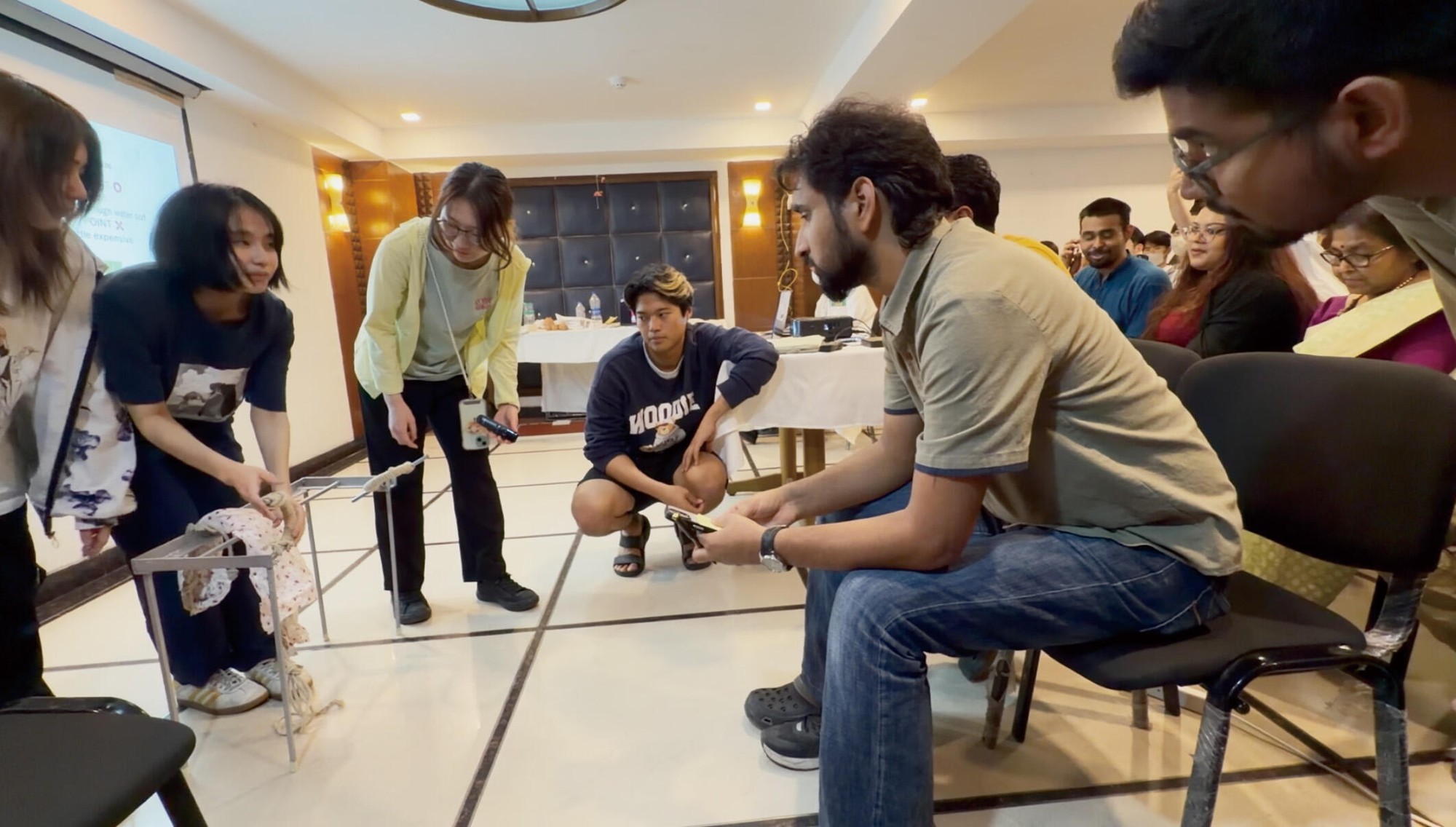 コルカタに滞在したインド組では、ジャダプール大学の学生寮を訪れた際に学生が手洗いで洗濯するのを見て「手洗いで大変な手絞りの作業を楽にするため」と布袋型や板挟み型、手回しの3種の絞り器を作ったチームや、でこぼこが多いインドの道路を走る定番の交通手段「リキシャ」から客が落ちないようにする解決策として、布のシートベルトやベニヤ板の足置き場を考案したチームもありました。