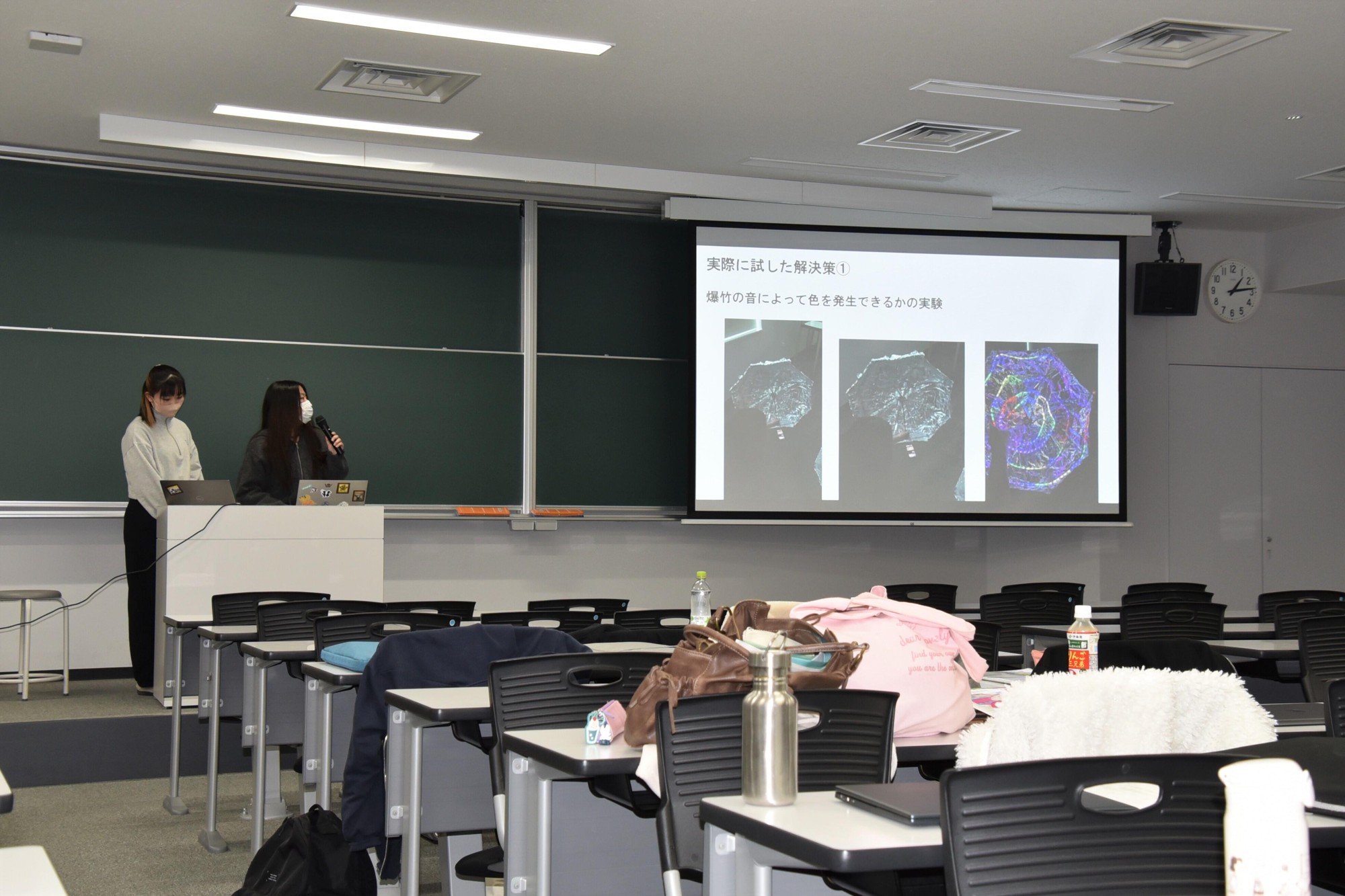 この日の活動報告会では、ハワイでの研修を引率した伊川正樹副学長やインド組を引率した大野栄治副学長らを前に、現地でどのような課題を見つけ、どう解決策を模索して「トライ&エラー」を繰り返し、その結果たどりついた成果となる解決策のプロトタイプ(試作品)を、ハワイ組は5つ、インド組は4つ発表しました。