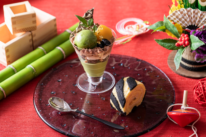 【デザート】西尾抹茶とミニチョコパフェ / 虎柄のロールケーキ ※お1人様一皿